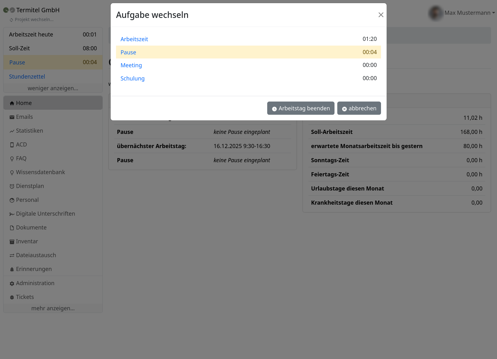 Arbeitsbeginn, Pause und Arbeitsende automatisch oder manuell erfassen – im Büro, Homeoffice oder Geschäft.